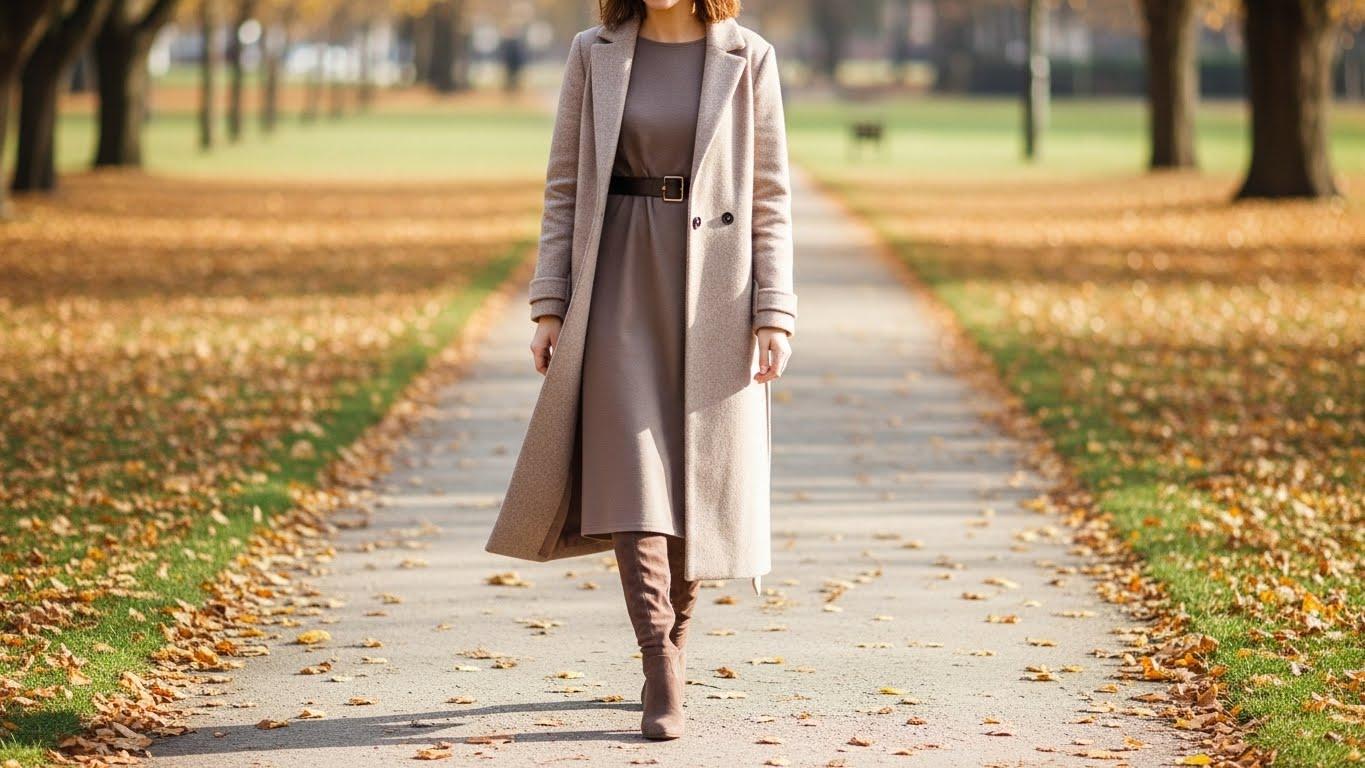 Jednym z najwygodniejszych jesiennych zestawów jest sukienka wełniana midi połączona z kozakami za kolano, długim wełnianym płaszczem i miękkim szalikiem XXL. Taki zestaw nie tylko chroni przed chłodem, ale też wygląda wyjątkowo elegancko i otulająco. Dzięki harmonii między fakturami i warstwami stylizacja pozostaje spójna, a sukienka midi zyskuje zupełnie nową, zimniejszą odsłonę.